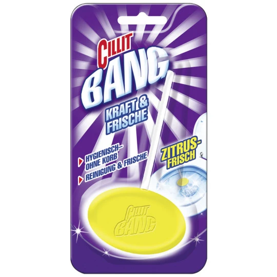 Cillit BANG Kraft & Frische ist der hygienische Weg für eine saubere und frische Toilette mit jedem Spülgang. Ohne Korb für hygienische Sauberkeit und langanhaltende Zitrus-Frische mit jedem Spülgang – wirkt bis zu 5 Wochen!